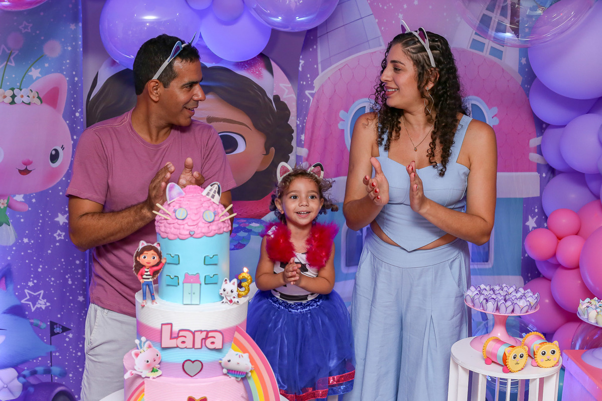 A cobertura fotográfica do aniversário de 3 anos de Lara, em Salvador, teve como tema a Casa Mágica da Gabby.